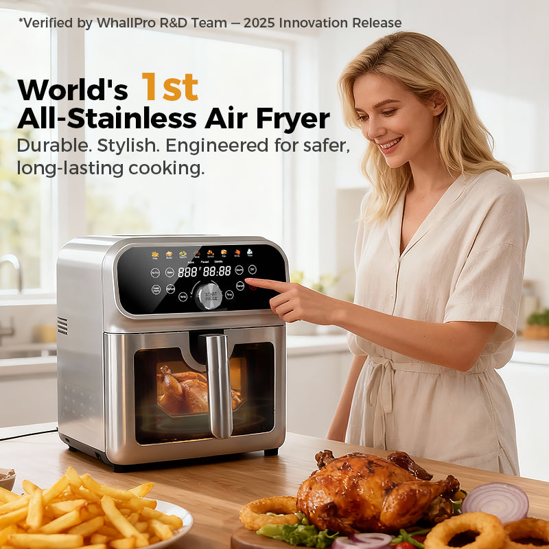 WhallPro 6QT All-Stainless Air Fryer, 8-in-1 Hot Oven with Digital LED Touchscreen & Visible Window