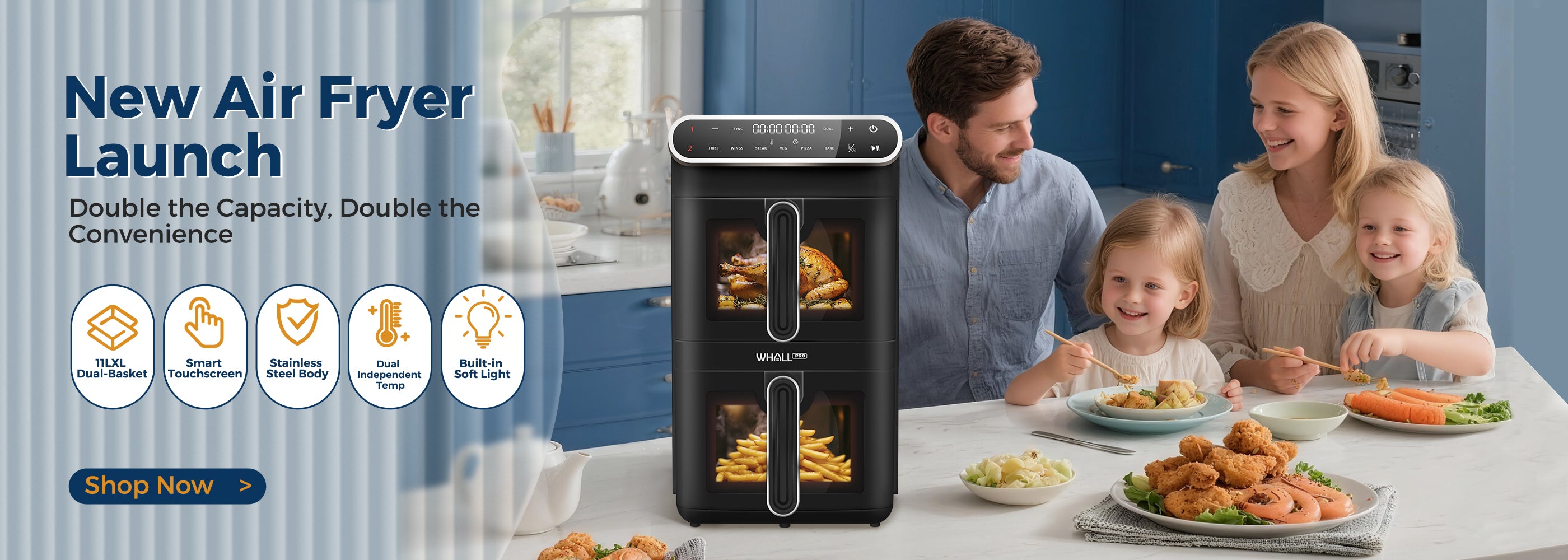 WhallPro® 11L Dual Basket Air Fryer – Independent Cook, Visible Windows, One-Touch Smart Control
