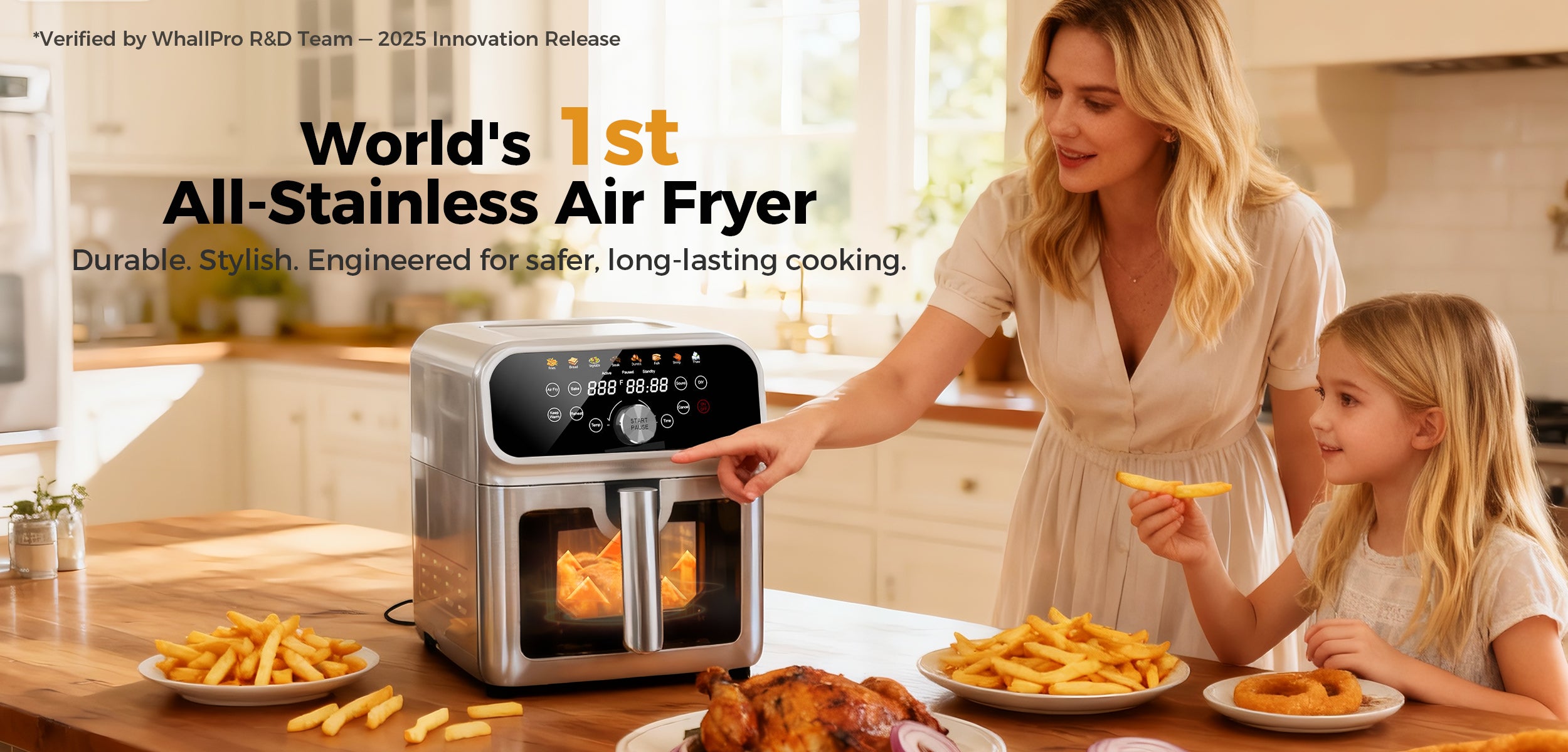 WhallPro 6QT All-Stainless Air Fryer, 8-in-1 Hot Oven with Digital LED Touchscreen & Visible Window
