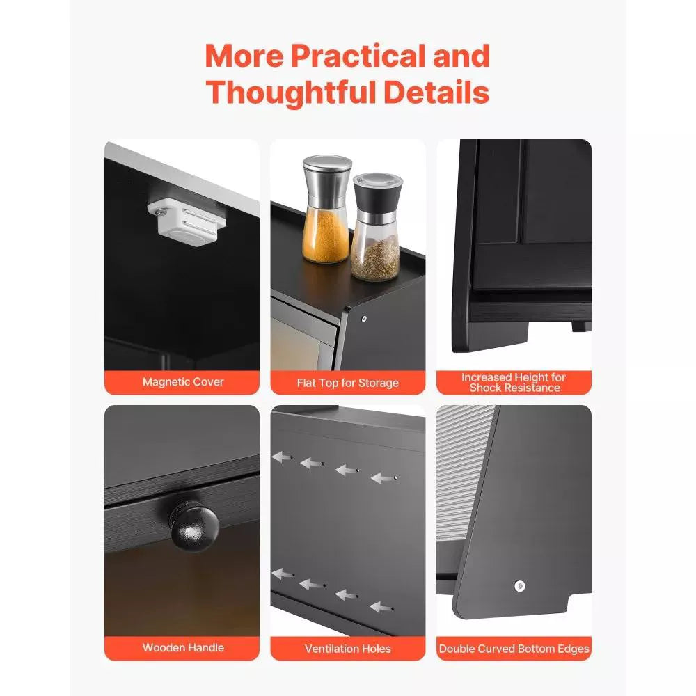 NEW Double Layer Bread Box, Large Bamboo Kitchen Storage Container, Farmhouse Wooden Breadbox with Acrylic Wavy Door Panel, Countertop Storage,Black