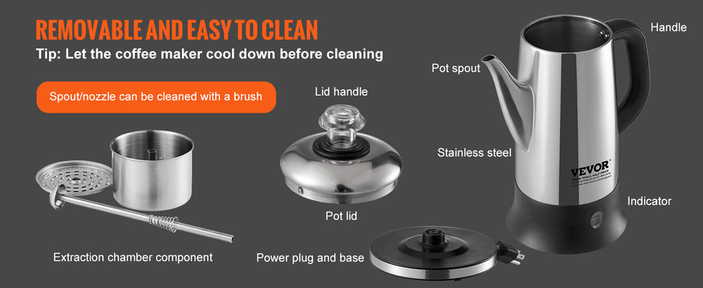 NEW 12-Cup Electric Percolator Coffee Pot, 304 Stainless Steel Body Coffee Percolator with Keep Warm Function & Heat-Resistant Handle, Classic Coffee Maker, Quick Brew & Easy-Pour Spout, Silver