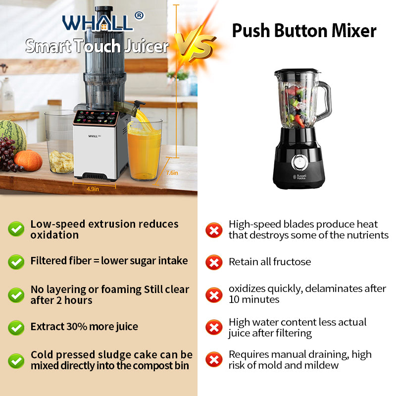 WhallPro® Cold Press Juicer Machine with Touchscreen, Slow Masticating Machines with 4.5" Extra Large Feed Chute, Reverse Function, Soft & Hard Models