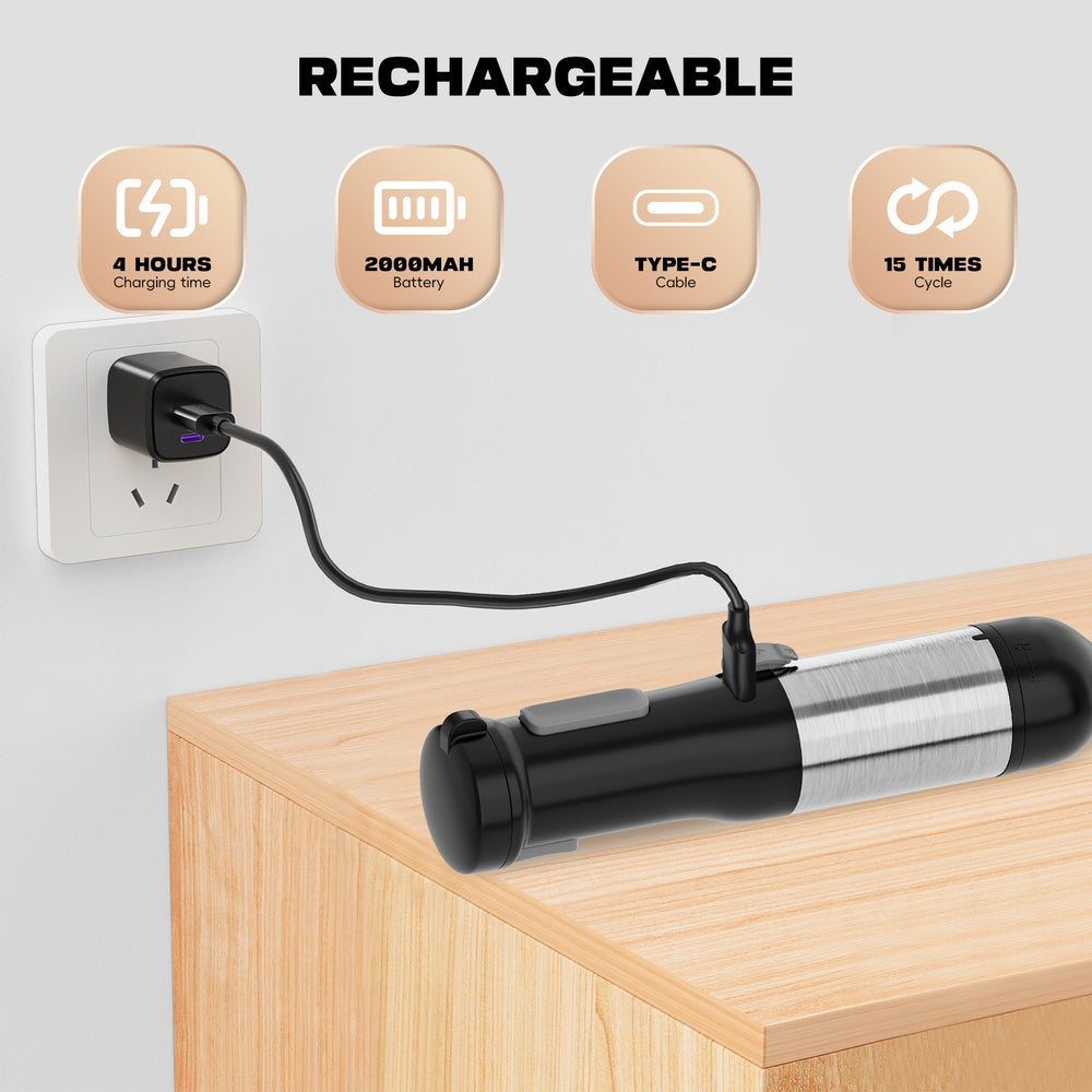 POWERFUL, CORDLESS & COMPACT: The powerful and versatile cordless rechargeable immersion hand blender can be used for up to 30 minutes (depending on viscosity of blended foods) and 5-in-1 Cordless Hand Blender Set – Rechargeable, stainless-steel blades for perfect blending results in or out of the kitchen and a power button safety lock.
