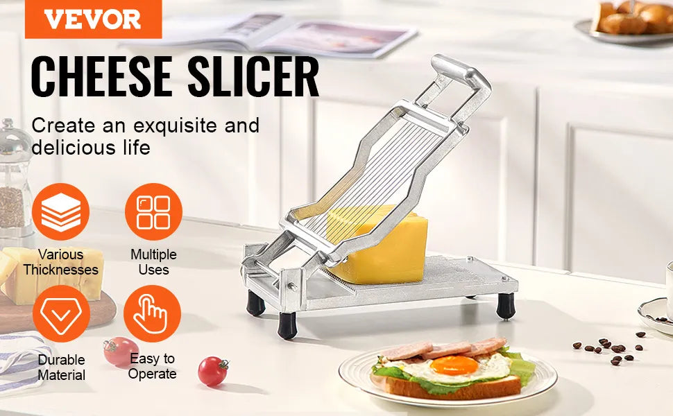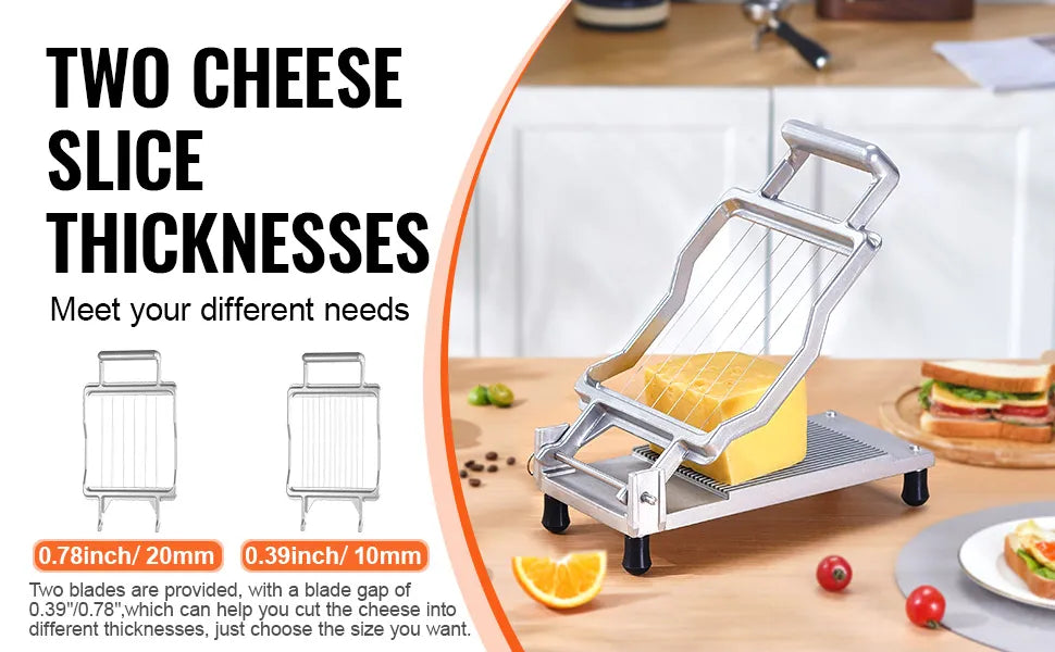 NEW Cheese Cutter with Wire, 0.39" & 0.78" Cheeser Butter Cutting Blade, Detachable Cheese Slicer Wire, Aluminum Alloy Commercial Cheese Slicer with 316 Stainless Steel Knife Wire, Kitchen Cooking